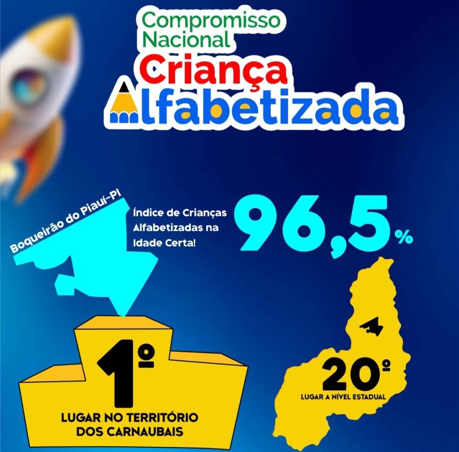 Foi divulgado, nesta terça-feira (28), o 1⁰ relatório de resultados do Indicador Criança Alfabetizada pelo Governo Federal. Onde segundo o INEP em 2023, 96,5% das crianças moradoras do município de Boqueirão do Piauí foram consideradas alfabetizadas.