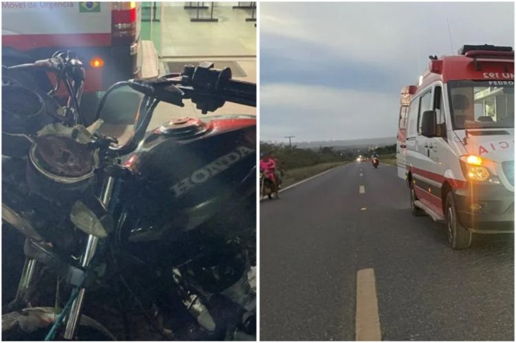 O passageiro de uma motocicleta identificado pelas iniciais C.E.A.P, de 24 anos, sofreu uma grave fratura exposta em uma das pernas após um acidente acidente de moto na PI-477, nas proximidades da localidade Corrente, zona rural de Pedro II-PI, por volta das 17h de domingo (23).