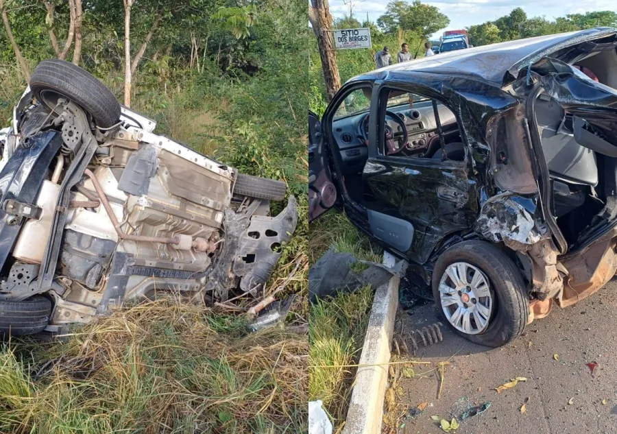 Segundo um vídeo que circula nas redes sociais, é possível ver um carro branco caido em um matagal na lateral da BR e um carro preto parcialmente danificado.