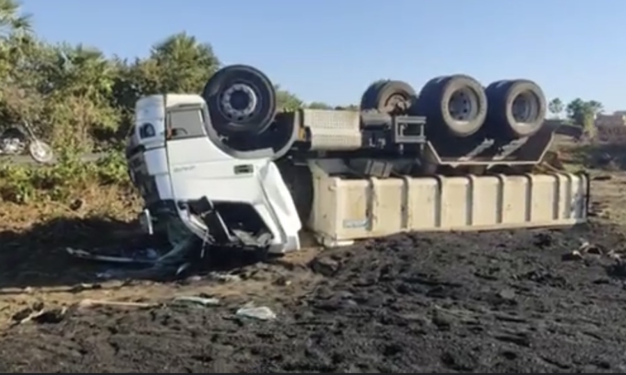 Por volta das 04h da madrugada desta terça-feira (02), um motorista identificado como Fabrício perdeu o controle de uma caçamba carregada de asfalto e tombou próximo a Serraria do Tavinho, em Juazeiro do Piauí.
