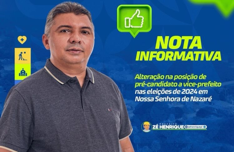 O atual prefeito José Henrique de Nossa Senhora de Nazaré, anunciou nesta quarta-feira (03), uma mudança na composição da sua chapa eleitoral para as eleições de 2024.