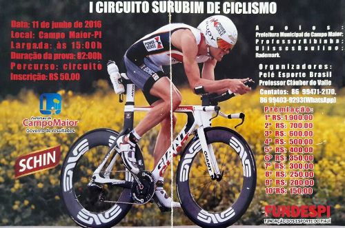 O ciclismo está ganhando cada vez mais destaque e força no cenário esportivo de Campo Maior assim como outras modalidades esportivas. É com essa motivação que a cidade se prepara para realizar no dia 11 de Junho o I Circuito Surubim de Ciclismo, evento que também fará parte da programação dos Festejo do Glorioso Santo Antônio. A prova terá largada às 15:00h com percurso de circuito realizado na Av. Surubim com duração de 2h.