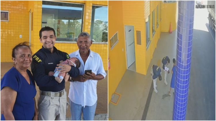 Em um vídeo divulgado pela PRF é possível vê os avós chegando com pequeno às pressas pedindo ajuda no posto fiscal.