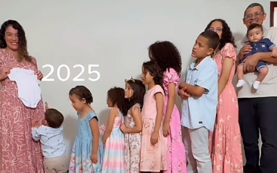 O casal de Anápolis, a 55 km da capital, que viralizou ao anunciar o 10° filho descobriu a gestação após uma das filhas, Teresa de 4 anos, fazer um desenho da mãe grávida.