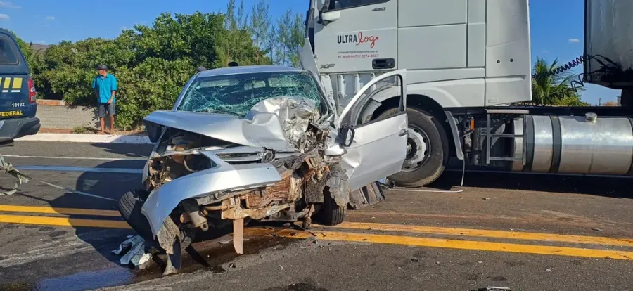 De acordo com a polícia, o carro de passeio dirigido pelo pai das crianças invadiu a contramão e colidiu frontalmente com o caminhão. Para a PRF a suspeita é que o homem de 55 anos tentou fazer uma ultrapassagem indevida quando o acidente aconteceu.