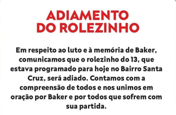 A passeata teve a sua programação adiada, com a nova data sendo informada em breve.