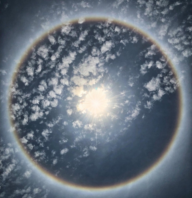 Moradores de algumas cidades do Piauí foram surpreendidos na manhã desta quarta-feira (25) com a aparição de um halo solar, fenômeno óptico que forma um anel luminoso ao redor do sol.