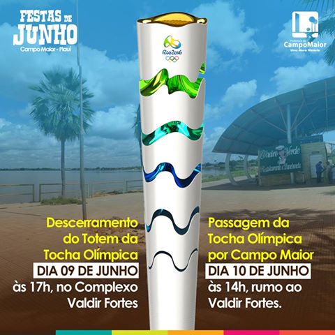 O descerramento do totem da Tocha Olímpica será feito nesta quinta-feira (09) em Campo Maior. Durante a solenidade a Prefeitura Municipal irá fazer uma homenagem a 10 atletas que brilharam no esporte. O evento está marcado para as 17h no Complexo de Eventos ao lado do trem da refesa.