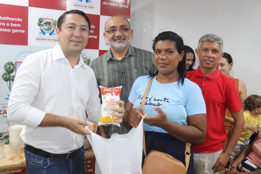 Nesta quinta-feira (10), a Prefeitura de Castelo do Piauí, por meio da Secretaria Municipal de Assistência Social e em parceria com o Governo do Estado, realizou a solenidade de entrega do Programa de Aquisição de Alimentos (PAA) do Leite Piauí. O evento beneficiou 264 famílias do município, que receberão semanalmente 4 litros de leite.