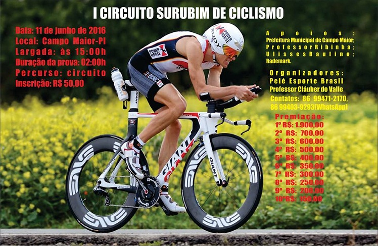 O I Circuito Surubim de Ciclismo conta com o apoio da Prefeitura Municipal de Campo Maior, Fundação Restaurar e Fundespi (Fundação de Esportes do Piauí).