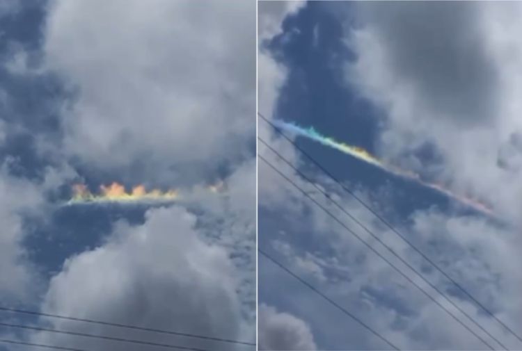 Moradores de Picos, a 311 km de Teresina, registraram um "arco-íris de fogo" no céu na tarde de sábado (26). O fenômeno é raro porque a luz solar precisa refletir em ângulo preciso para causá-lo. Esse efeito é formado pela refração dos raios solares nos cristais de gelo de uma nuvem, as chamadas cirros.