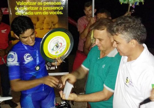 ?Um sentimento de realiza??o. ? um sinal que os treinos est?o dando resultado. Fizemos um belo trabalho de equipe e conseguimos o lugar mais alto do p?dio. A organiza??o est? de parab?ns. Uma prova bem organiza??o e boa premia??o?, disse o campe?o. Lucas j? disputou quatro competi??es de ciclismo no munic?pio e essa ? a segunda vez que fatura o t?tulo. O atleta embolsou uma premia??o de R$ 1.900,00, trof?u e medalha.?