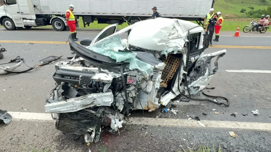 A motorista de um carro de 55 anos morreu após bater de frente com um caminhão na BR-116, em Muriaé, na manhã desta quinta-feira (7).