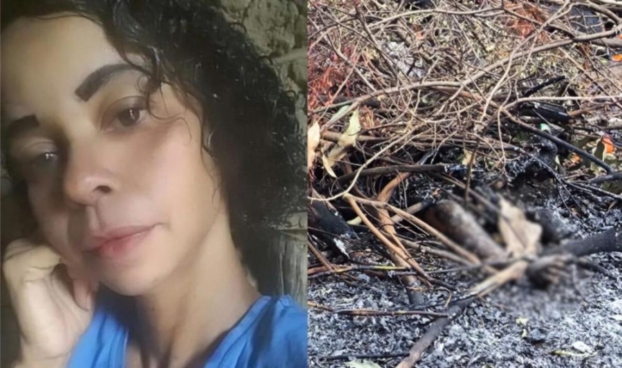 Em um vídeo gravado por populares, é possível visualizar o corbo carbonizado debaixo de galhos e plantas, em uma tentativa de ocultar o cadáver.