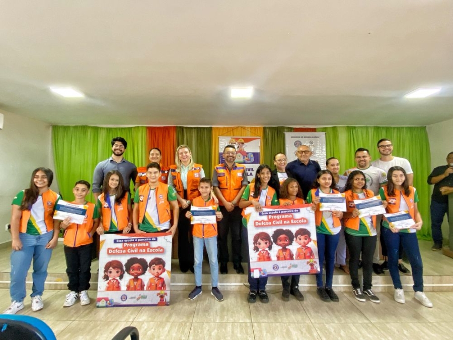 A solenidade aconteceu no Palácio Perypery e contou com a presença do vice-prefeito do município, Hilton Osório, gestores municipais de Defesa Civil, Planejamento e Educação, professores e alunos.