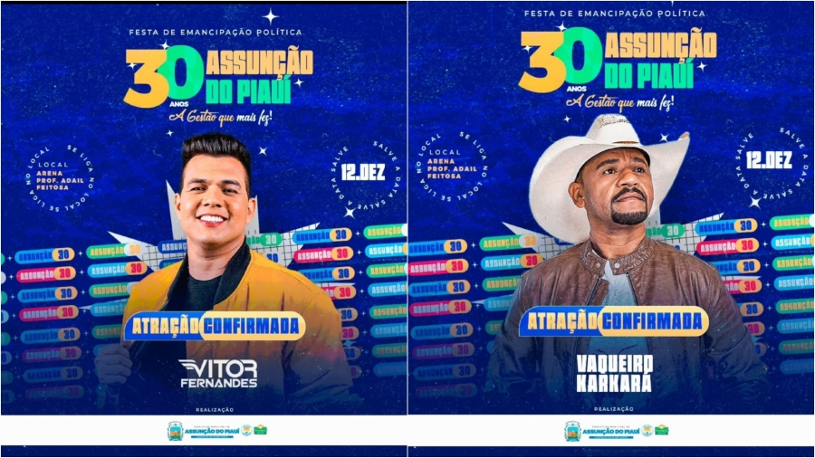 Para marcar essa data tão especial, duas atrações imperdíveis já foram confirmadas, Vitor Fernandes fenômeno do piseiro, e Karkará, irão trazer muita animação e música de qualidade.
