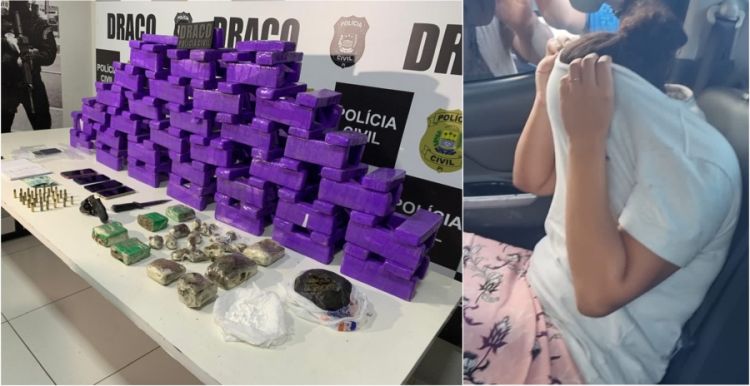 Conforme o delegado, um casal foi preso em casa na Vila Firmino, na Zona Leste de Teresina e que a mulher foi presa inicialmente com drogas e uma arma e parte dos policiais permaneceu na residência e seu marido chegou com uma sacola com drogas. O homem é foragido do sistema penitenciário do Piauí, tem passagens pela polícia pelo crime de homicídio e três mandados em aberto. Com a sua companheira a Polícia Civil encontrou drogas.