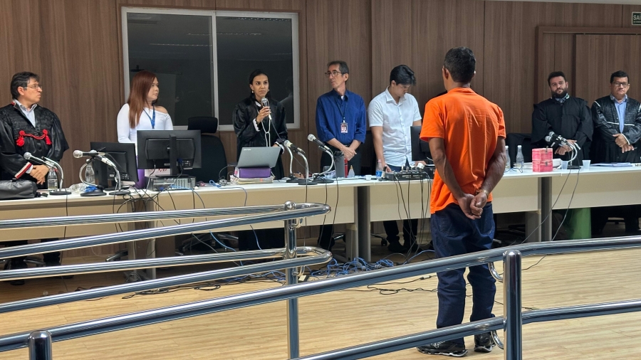 O advogado Hartonio Bandeira, na defesa de Fabrício dos Santos, sustentou negativa de autoria por falhas na investigação, ausência de provas e pediu ao júri que, na dúvida, absolvesse o réu.