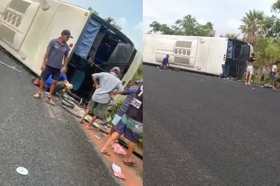 Um ônibus tombou nesta segunda-feira (6) em uma rodovia na PI-223, perto de Beneditinos, Norte do Piauí. O veículo tinha passageiros, e cerca de 12 pessoas ficaram feridas. Até o momento, não há notícias de mortos.