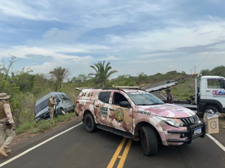 "Recebemos a informação desse veículo tombado aqui na região de Altos e ao chegarmos aqui encontramos o veículo e encontramos cerca de 200 caixas de cigarros contrabandeados do Paraguai", informou o delegado Mateus Zanata.