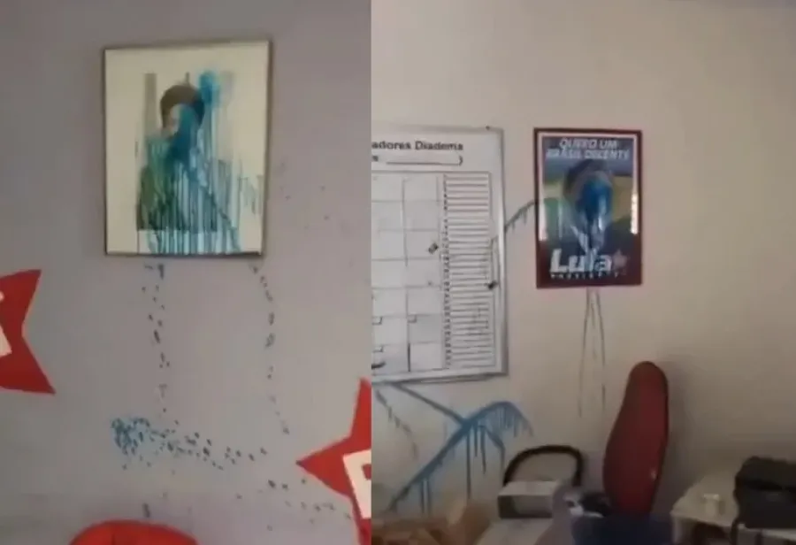 A sede do diretório municipal do PT em Diadema, São Paulo, foi alvo de vandalismo. Membros da legenda constataram o fato na manhã desta terça (14) - o local estava fechado desde o último dia 21.