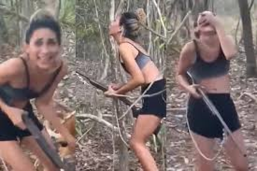 No vídeo, que viralizou e chocou internautas, ela aparece atirando em uma onça-parda que estava em cima de uma árvore. O animal ainda tenta resistir, mas é atacado pelos cães que estavam com a mulher e não sobrevive.