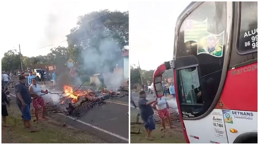 Os manifestantes, moradores da localidade, bloquearam a via utilizando galhos de árvores e pneus incendiados. Em vídeos divulgados nas redes sociais, é possível ver um ônibus passando pelo local, mesmo com o protesto em andamento.