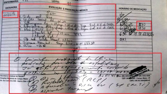 O Em Foco também teve acesso com exclusividade ao prontuário. Nele, aparecem as medicações prescritas e o horário que foram realizadas em Isabeli. O documento mostra ainda os procedimentos feitos que tentaram salvar a vida da garota.
