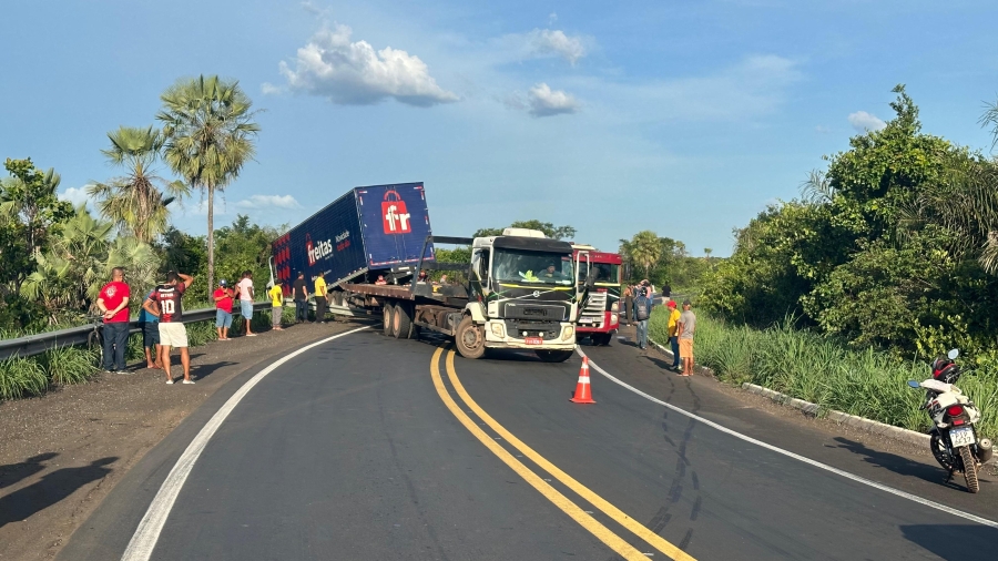De acordo com o motorista do caminhão, que não foi identificado, o acidente aconteceu quando ele tentou desviar de um carro que invadiu a contramão. Ao perder o controle, o veículo tombou na curva e desceu um aterro, mas, felizmente, o condutor saiu ileso.