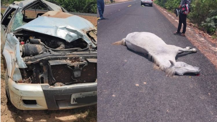 Segundo informações, havia vários animais na pista e o motorista não conseguiu desviar de todos e colidindo em um cavalo, vindo a perder o controle do veículo e capotando.