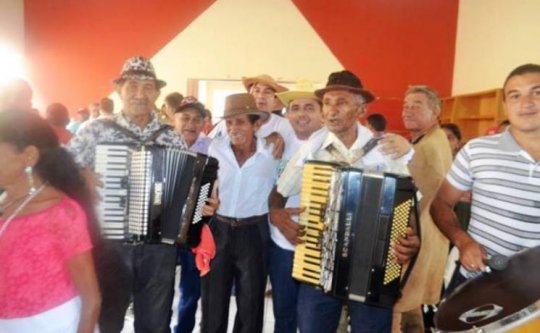 Sanfoneiro se apresenta durante o café do vaqueiro, no salão paroquial