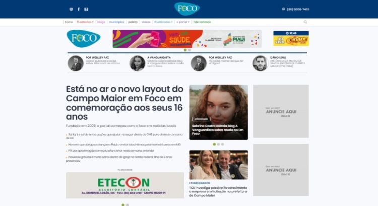 Nesta terça-feira, 25 de fevereiro, o site do portal Campo Maior em Foco retornou ao ar com uma novidade: um novo layout em comemoração aos seus 16 anos de existência. A mudança traz uma "cara nova" ao site, com o objetivo de melhorar a acessibilidade e a experiência dos leitores.