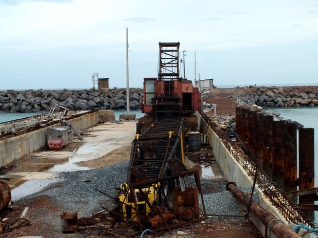 Obra do que seria o 1º porto marítimo do estado se arrasta há 40 anos.