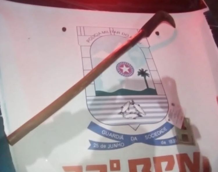 No início da madrugada desta quarta-feira (05), um homem identificado pelas iniciais M.V.R.S foi preso após tentar agredir outro homem com uma foice durante uma festa de Carnaval que acontecia na cidade de Santa Cruz dos Milagres, Piauí.