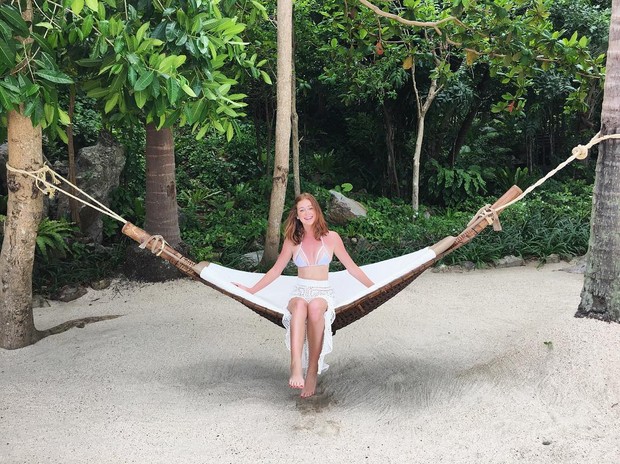 Marina Ruy Barbosa aproveitou esta segunda-feira, 11, para relaxar em uma rede durante sua viagem pela Tailândia, no Sudeste asiático. A atriz, que ficou noiva do piloto Xandinho Negrão no último fim de semana, aparece bastante bronzeada na foto postada em sua conta oficial no Instagram. A vermelhidão da ruivinha é tão grande que um seguidor chegou a comentar: "Parece que alguém esqueceu o protetor solar".
