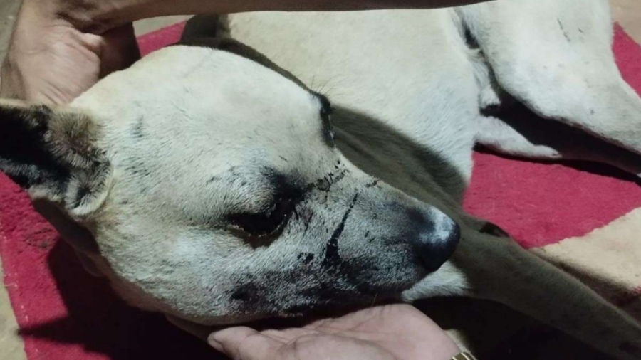 O animal ficou gravemente ferido, sofreu cortes na cabeça e ficou sem um olho. Não há informações sobre objetos usados e se algo motivou a agressão. A suspeita da polícia é de que o homem estava bêbado.