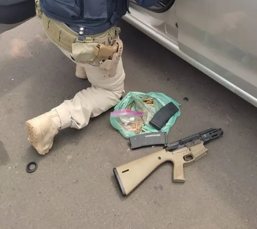 Com a apreensão da arma de fogo, o motorista do carro foi preso em flagrante pelo crime de porte ou posse de arma de fogo e conduzido para a Central de Flagrantes da capital para a realização dos procedimentos necessários.
