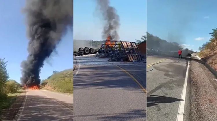 Uma pessoa morreu e outra ficou gravemente ferida após o caminhão em que elas estavam tombar e pegar fogo na manhã desta sexta-feira (2), na BR-020, entre os municípios João Costa e São João do Piauí. Segundo a Polícia Militar, o veículo estava carregado de vidro.