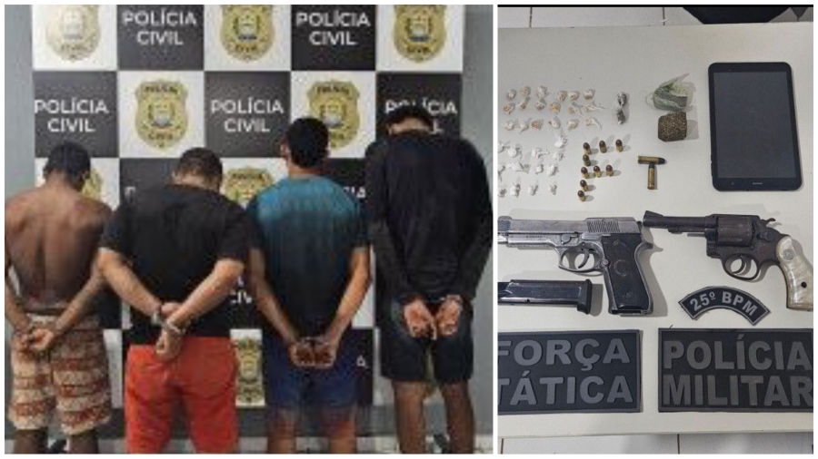 De acordo com informações da polícia militar, quatro homens oriundos de Camocim (CE), ligados à facção criminosa Comando Vermelho foram presos. Os suspeitos haviam se deslocado à cidade com o objetivo de executar rivais ligados ao tráfico local, com apoio de um homem identificado como “Jefferson”.