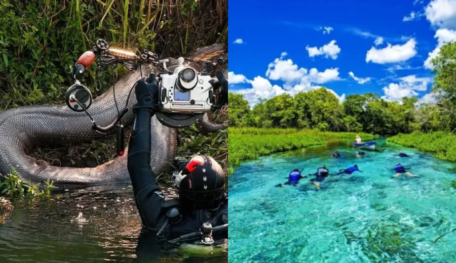 "O solo da região é rico em calcário, o que torna a água o mais cristalina possível. Esse fenômeno natural permite ver com clareza tudo debaixo d’água e ajuda, e muito, nos avistamentos das sucuris, o que é normal ocorrer durante passeios, você vê uma cobra dessas. Presença que talvez passaria despercebida em rios mais turvos".