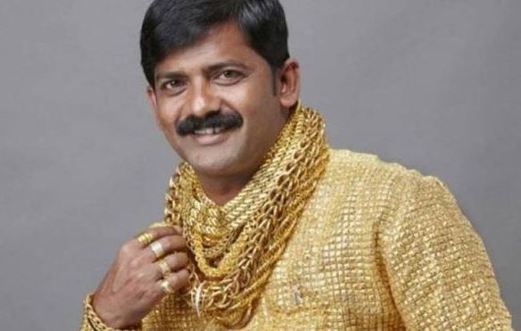 O especulador era invariavelmente fotografado com o corpo coberto de ouro. Tinha origens humildes, mas prosperou com a venda de imóveis e usou o capital para conceder empréstimos na região de Pune.