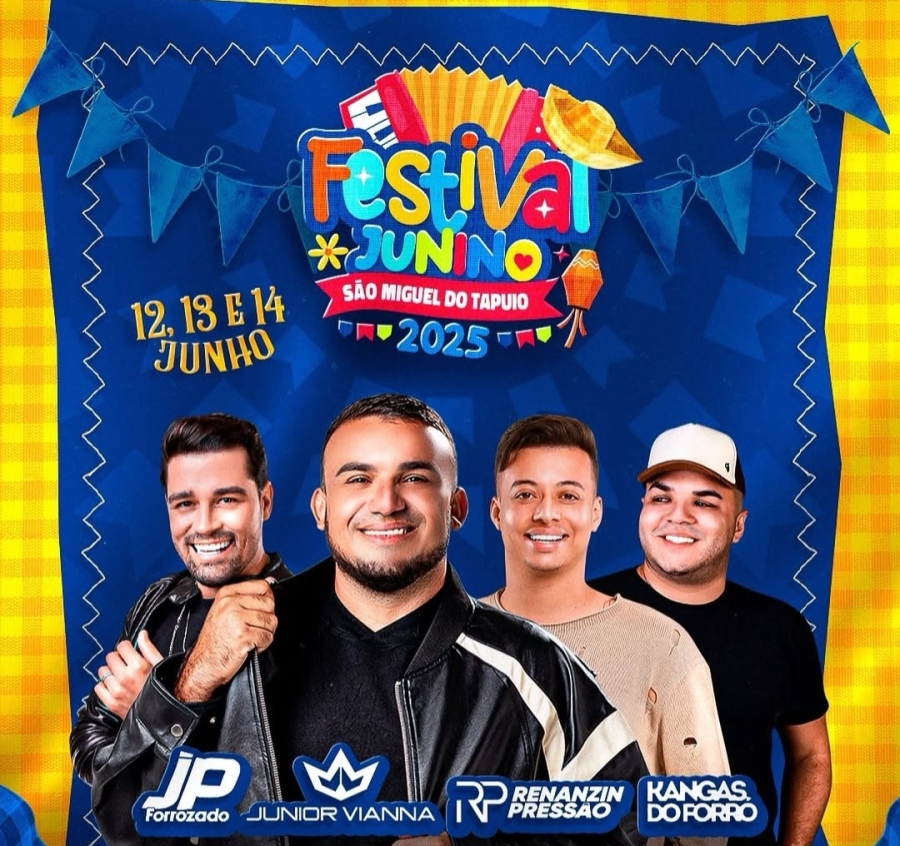 A prefeitura de São Miguel do Tapuio anunciou as atrações musicais que irão se apresentar no Festival Juninho deste ano. O evento ocorre nos dias 12, 13 e 14 de junho.