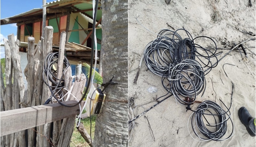 Durante a fiscalização, foi constatado que os imóveis estavam clandestinamente ligados à rede elétrica, sem autorização da concessionária nem qualquer sistema de medição de consumo. A equipe técnica da empresa de energia que acompanhava a operação identificou que os cabos utilizados nas ligações ilegais pertencem à própria concessionária, o que reforça a gravidade da infração.