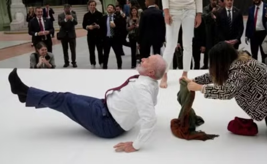 O presidente Luiz Inácio Lula da Silva fez uma "performance" inusitada durante visita a uma exposição em Paris, na França, nesta sexta-feira (6).