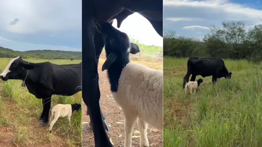 A tutora dos animais, Ana Paula Oliveira, flagrou o momento em que o filhote de ovelha mamava diretamente na vaca. O gesto de afeto surpreendeu até mesmo moradores mais experientes da região.