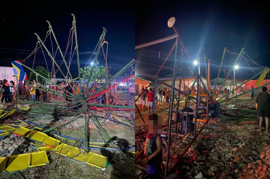Segundo a Polícia Militar do Piauí (PMPI), a estrutura do brinquedo cedeu e caiu em um parque montado próximo a uma praça da cidade, no primeiro dia de festejos juninos.