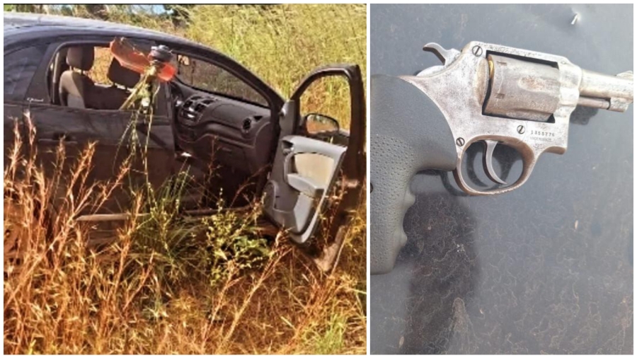 Dentro do carro foram encontrados um revólver calibre .38, uma espingarda, estojos de munição calibre .40, uma roçadeira da marca Tayama, além de roupas, calçados, capacete e outros pertences atribuídos aos suspeitos. A mochila e a roçadeira levadas da vítima também foram recuperadas.