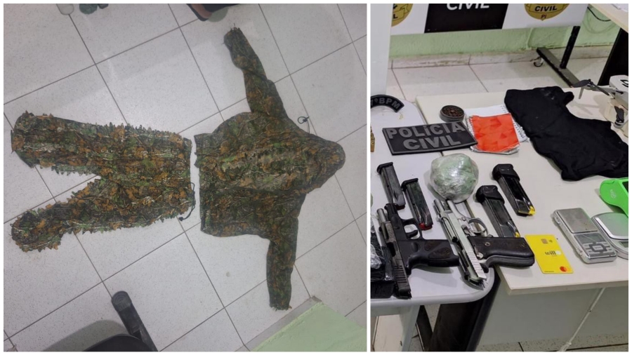 Durante ação foram apreendidos roupas que utilizavam para esconder-se na vegetação, duas pistolas, drogas como: crack, cocaína e maconha e quase 13 mil reais em dinheiro.