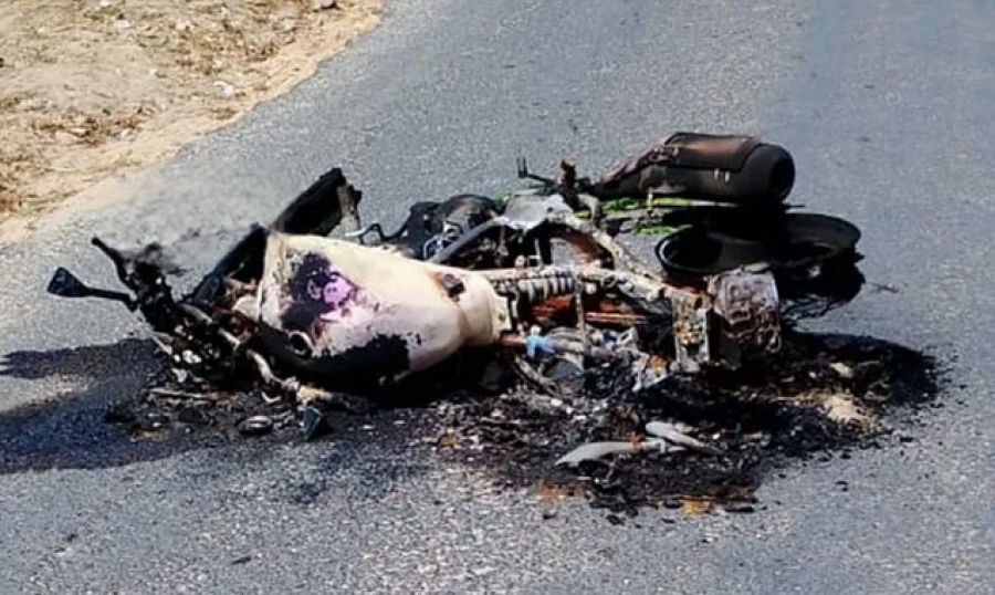 De acordo com a PM, o veículo destruído pelo fogo é uma motocicleta modelo Honda CB 300, de cor azul, ano 2010. Ao verificar a placa, os policiais identificaram que a moto pertencia a um homem conhecido como "Tota", jogador de futebol amador e residente da cidade de Quiterianópolis, no Ceará.