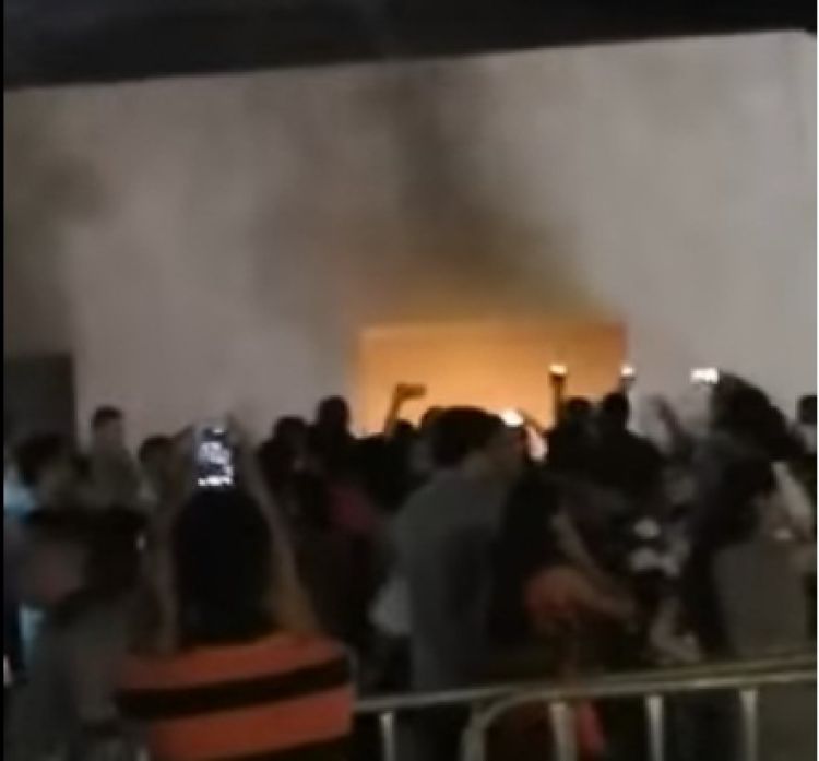 Por volta das 2h da manhã, cansados da espera e informados de que o show realmente não iria acontecer, os espectadores iniciaram um quebra-quebra e atearam fogo ao palco. Um vídeo gravado no momento em que o fogo se alastrava, mostra as chamas e a forte fumaça no local.